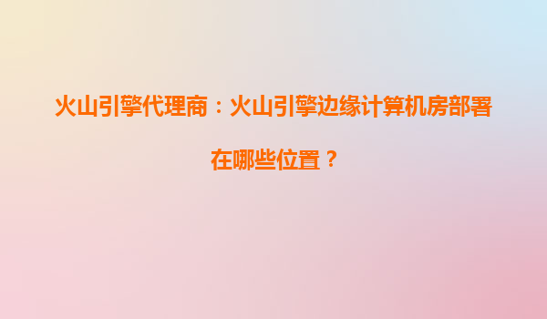 2025-04-09火山引擎邊緣計算機(jī)房全球部署布局 火山引擎作為字節(jié)跳動旗下的云服務(wù)平臺,其邊緣計算節(jié)點(diǎn)已覆蓋全球主要經(jīng)濟(jì)區(qū)域,在國內(nèi)部署超過1000個邊緣機(jī)房,覆蓋北京、上海、廣州、深圳等30+省市自治區(qū),并在海外...