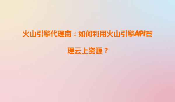 2025-04-08火山引擎代理商:如何利用火山引擎API高效管理云上資源 一、火山引擎的核心優(yōu)勢 火山引擎作為字節(jié)跳動旗下的云服務(wù)平臺,憑借其在海量數(shù)據(jù)處理、AI算法和全球化基礎(chǔ)設(shè)施領(lǐng)域的深厚積累,為企...