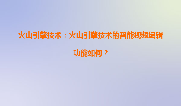 2025-04-02火山引擎技術(shù):智能視頻編輯功能的創(chuàng)新與應(yīng)用 在數(shù)字化內(nèi)容爆發(fā)式增長的今天,視頻已成為信息傳遞的核心載體?;鹕揭孀鳛樽止?jié)跳動旗下的企業(yè)級技術(shù)服務(wù)平臺,憑借其強(qiáng)大的AI能力和數(shù)據(jù)處理經(jīng)驗(yàn),...