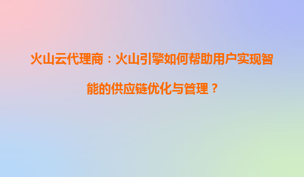 2025-03-29火山引擎與代理商:攜手打造智能供應鏈新生態(tài) 在數(shù)字化轉(zhuǎn)型的浪潮下,供應鏈管理正面臨效率、成本與靈活性的多重挑戰(zhàn)?;鹕揭孀鳛樽止?jié)跳動旗下的企業(yè)級技術(shù)服務平臺,依托其領(lǐng)先的云計算、大數(shù)據(jù)...