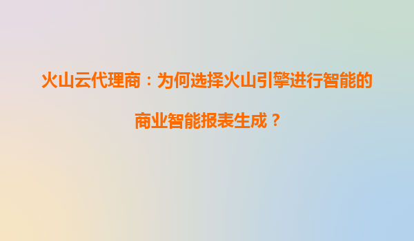 4008-020-360 火山云代理商:為何選擇火山引擎進行智能的商業(yè)智能報表生成? 引言:商業(yè)智能(BI)的核心價值與火山引擎的定位 在數(shù)據(jù)驅(qū)動決策的時代,商業(yè)智能(BI)已成為企業(yè)優(yōu)化運營、提升競爭力的核心工具。而報表...