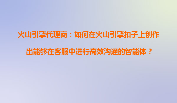 2025-10-27火山引擎代理商:如何在火山引擎扣子上創(chuàng)作出高效溝通的客服智能體? 一、火山引擎與扣子平臺的核心優(yōu)勢 火山引擎作為字節(jié)跳動旗下的企業(yè)級技術(shù)服務(wù)平臺,憑借...