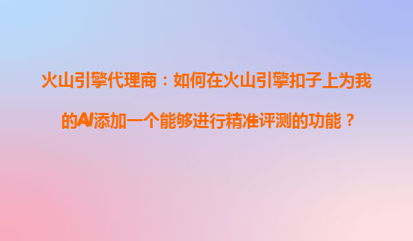 2025-10-27火山引擎代理商:為AI應(yīng)用添加精準(zhǔn)評測功能 作為火山引擎的代理商,我們深知在AI應(yīng)用開發(fā)中,精準(zhǔn)評測是驗證模型效果、優(yōu)化迭代的關(guān)鍵環(huán)節(jié)。本文將詳細介紹如何利用火山引擎扣子平臺為您的AI應(yīng)用快速集成高效評...