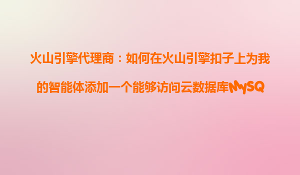 2025-10-26火山引擎代理商指南:為智能體集成云數(shù)據(jù)庫MySQL版工具 火山引擎扣子平臺(tái)的核心優(yōu)勢(shì) 作為字節(jié)跳動(dòng)旗下的云服務(wù)平臺(tái),火山引擎憑借其高可靠性、彈性擴(kuò)展和一站式解決方案,成為企業(yè)智能化轉(zhuǎn)型的首選。...