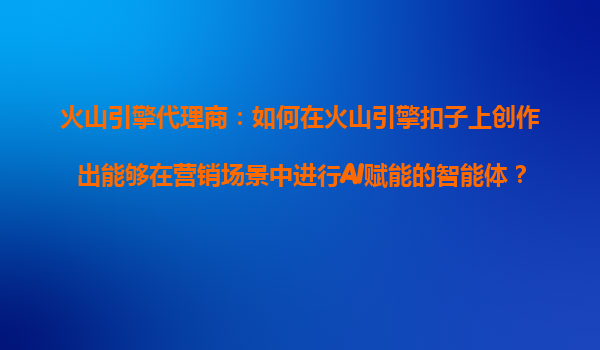 4008-020-360 火山引擎代理商:如何在火山引擎扣子上創(chuàng)作營(yíng)銷場(chǎng)景AI智能體 一、火山引擎與代理商的協(xié)同優(yōu)勢(shì) 火山引擎作為字節(jié)跳動(dòng)旗下的智能科技平臺(tái),提供從數(shù)據(jù)分析到AI模型部署的全鏈路能力;而火山引擎...