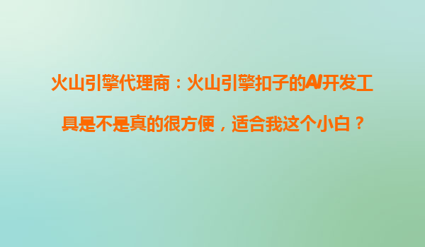 2025-10-26火山引擎代理商:火山引擎扣子的AI開發(fā)工具真的很方便,適合小白嗎? 作為火山引擎的代理商,我們經(jīng)常被問到“火山引擎扣子的AI開發(fā)工具是否真的適合沒有編程基礎的小白用戶?”“它的學習曲線平緩嗎?”今天...