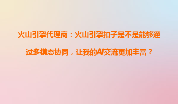 2025-10-26火山引擎扣子:多模態(tài)協(xié)同如何賦能AI交流的豐富性? 一、多模態(tài)協(xié)同:AI交流的下一站 在AI技術的快速發(fā)展中,單一的文本交互已無法滿足用戶對沉浸式體驗的需求...