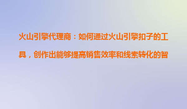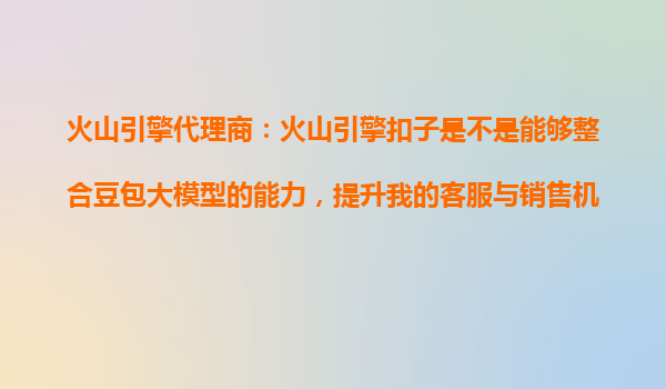 2025-10-24火山引擎代理商:如何通過火山引擎扣子的工具,創(chuàng)作出能夠提高銷售效率和線索轉(zhuǎn)化的智能體? 引言:數(shù)字化轉(zhuǎn)型下的銷售效率挑戰(zhàn) 在競爭激烈的市場環(huán)境中,企業(yè)...