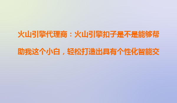 2025-10-24火山引擎代理商:火山引擎扣子是否適合學習教育領域的AI開發(fā)?如何實施? 一、火山引擎的核心優(yōu)勢與教育AI開發(fā)的契合點 火山引擎作為字節(jié)跳動旗下的云服務平臺,憑借其強大的數(shù)據(jù)處理能力、AI算法...