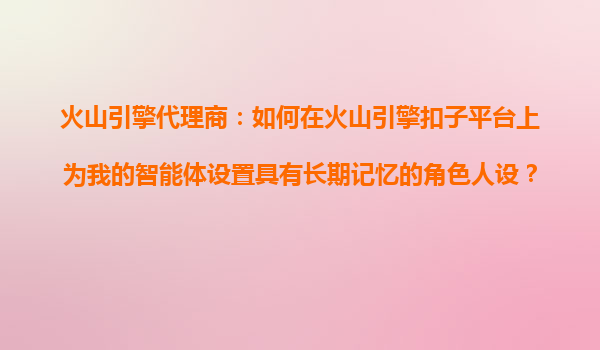 2025-10-24火山引擎代理商指南:打造具有長期記憶的智能體角色人設 在AI技術(shù)快速發(fā)展的今天,為智能體設置具有長期記憶的角色人設已成為提升用戶體驗的關(guān)鍵?;鹕揭婵圩悠脚_憑借其強大的技術(shù)能力和靈活的配置選項,為代...