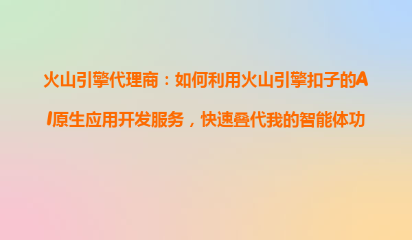 2025-10-24火山引擎代理商:如何利用火山引擎扣子的AI原生應用開發(fā)服務,快速迭代我的智能體功能? 一、火山引擎的核心優(yōu)勢與AI原生開發(fā)能力 火山引擎作為字節(jié)跳動旗下的企業(yè)級技術(shù)服務平臺,其扣子(Boeing)AI原生...