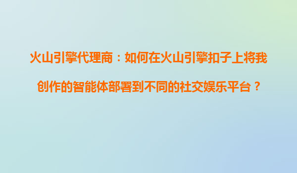 2025-10-24火山引擎代理商:如何將智能體部署到不同社交娛樂平臺的全流程指南 一、火山引擎扣子平臺的智能體部署價值 在數(shù)字化浪潮中,企業(yè)通過智能體(Agent)實現(xiàn)自動化服務已成趨勢。火山引...