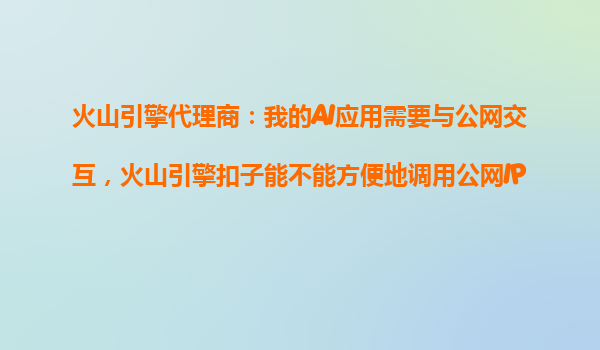 2025-10-24火山引擎代理商助力AI應(yīng)用:無縫連接公網(wǎng)IP與云搜索服務(wù) 一、火山引擎扣子的公網(wǎng)交互能力解析 在AI應(yīng)用的開發(fā)與部署過程中,與公網(wǎng)的交互能力往往成為關(guān)鍵需求。作為火山引擎代理商,我們深知開發(fā)者對(duì)...