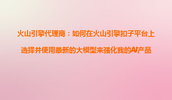 2025-10-24火山引擎代理商指南:如何在火山引擎扣子平臺(tái)上選擇并使用最新大模型強(qiáng)化AI產(chǎn)品 一、火山引擎的核心優(yōu)勢(shì) 作為字節(jié)跳動(dòng)旗下的云計(jì)算服務(wù)平臺(tái),火山引擎憑借以下優(yōu)勢(shì)成為AI...