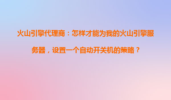 2025-10-23火山引擎代理商:如何為服務(wù)器配置自動開關(guān)機(jī)策略? 一、火山引擎的智能化運(yùn)維優(yōu)勢 作為字節(jié)跳動旗下的云服務(wù)平臺,火山引擎提供高性能彈性計算資源與智能化運(yùn)維工具。其核心優(yōu)勢包括: 秒級...