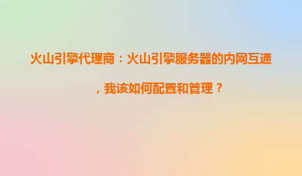 2025-10-23火山引擎代理商:火山引擎服務(wù)器的內(nèi)網(wǎng)互通配置與管理指南 一、火山引擎內(nèi)網(wǎng)互通的核心優(yōu)勢 作為字節(jié)跳動旗下的云計算服務(wù)平臺,火山引擎提供高性能、低延遲的內(nèi)網(wǎng)互通服務(wù),其核心優(yōu)勢包括: ...