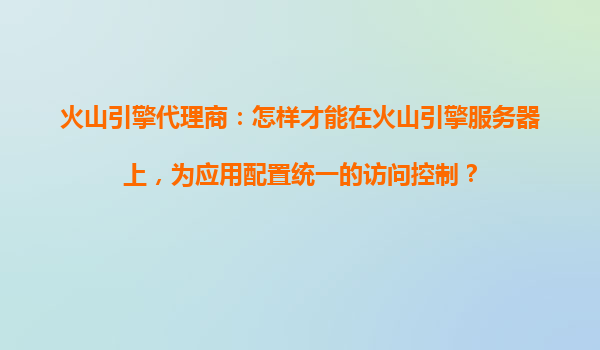 2025-10-23火山引擎代理商指南:如何為應(yīng)用配置統(tǒng)一的訪問控制 引言 在數(shù)字化轉(zhuǎn)型的浪潮下,企業(yè)應(yīng)用的安全性和穩(wěn)定性成為核心關(guān)注點。作為火山引擎代理商,為客戶提供高...