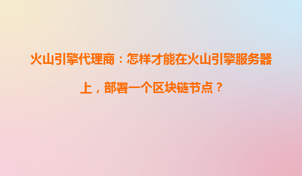 2025-10-23火山引擎代理商指南:如何在火山引擎服務(wù)器上部署區(qū)塊鏈節(jié)點 一、火山引擎與區(qū)塊鏈節(jié)點的部署優(yōu)勢 區(qū)塊鏈技術(shù)因其去中心化、安全透明的特性,在金融、供應(yīng)鏈、...