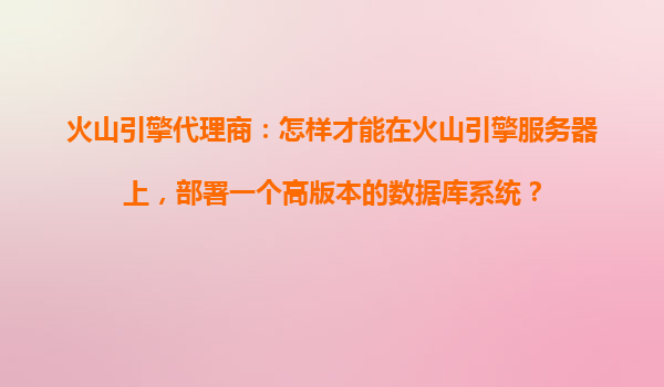 2025-10-23火山引擎代理商:如何在火山引擎服務(wù)器上部署高版本數(shù)據(jù)庫系統(tǒng) 一、火山引擎與代理商的核心優(yōu)勢 火山引擎作為字節(jié)跳動旗下的云計算服務(wù)平臺,提供高性能云服務(wù)器、彈性存儲及完善的PaaS服務(wù)組合。其代理商...