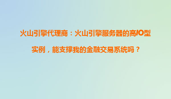 2025-10-22火山引擎代理商解析:火山引擎高IO型實例如何為金融交易系統(tǒng)保駕護航? 一、金融交易系統(tǒng)的核心需求與挑戰(zhàn) 金融交易系統(tǒng)對服務器的要求極為嚴苛,尤其是高頻交易、實時清算等場景,...