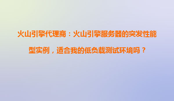 2025-10-21火山引擎突發(fā)性能型實例:低負載測試環(huán)境的理想選擇 對于開發(fā)者和企業(yè)來說,選擇適合的云服務器實例類型至關(guān)重要,尤其是針對低負載測試環(huán)境?;鹕揭孀鳛樽止?jié)跳動旗下的云服務品牌,其突發(fā)性能型實例憑借...