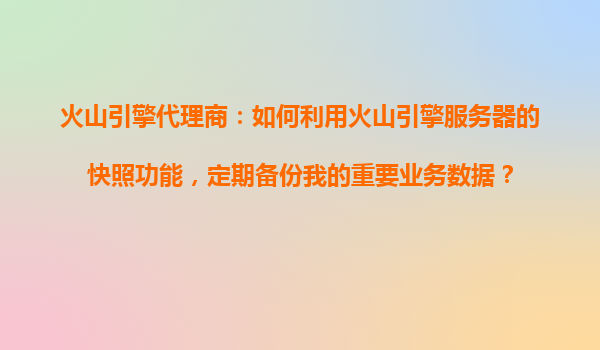 2025-10-19火山引擎代理商:如何利用火山引擎服務(wù)器的快照功能定期備份業(yè)務(wù)數(shù)據(jù) 引言 在數(shù)字化轉(zhuǎn)型的浪潮中,數(shù)據(jù)已成為企業(yè)最核心的資產(chǎn)之一。確保業(yè)務(wù)數(shù)據(jù)的安全性和可恢復(fù)性是企業(yè)IT管理的重要課題?;鹕揭?..