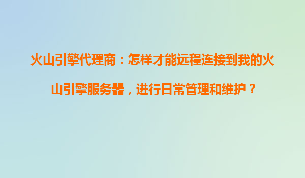 2025-10-19火山引擎代理商指南:遠(yuǎn)程連接火山引擎服務(wù)器進(jìn)行日常管理與維護(hù) 一、火山引擎的核心優(yōu)勢(shì) 作為字節(jié)跳動(dòng)旗下的云服務(wù)平臺(tái),火山引擎提供高性能計(jì)算、彈性擴(kuò)展和全球化部署能力,其核心優(yōu)勢(shì)包括: ...