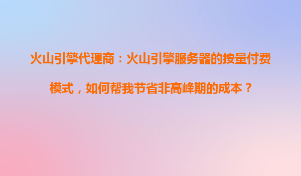 2025-10-19火山引擎代理商解析:如何通過(guò)按量付費(fèi)模式在非高峰期節(jié)省成本? 一、火山引擎按量付費(fèi)模式的核心優(yōu)勢(shì) 火山引擎作為字節(jié)跳動(dòng)旗下的云計(jì)算服務(wù)品牌,其按量付費(fèi)(Pay-as-you-go)模式允許用戶(hù)根據(jù)實(shí)際資源...