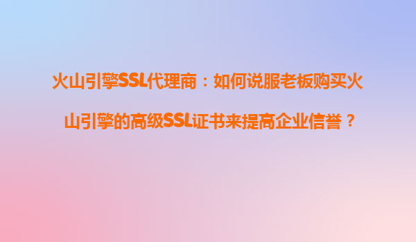 2025-10-18火山引擎SSL代理商:如何說服老板購買火山引擎的高級SSL證書來提高企業(yè)信譽? 1.理解SSL證書對企業(yè)信譽的重要性 在當今數(shù)字化時代,企業(yè)信譽是吸引客戶和維護市場份額的關鍵因素之一。SSL證書(SecureSoc...