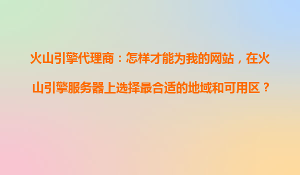 4008-020-360 火山引擎代理商:如何為您的網(wǎng)站選擇最合適的地域和可用區(qū)? 引言 在數(shù)字化時代,網(wǎng)站的性能和用戶體驗至關重要。選擇適合的服務器地域和可用區(qū)是確保網(wǎng)站快速、穩(wěn)定運行的關鍵。作為火山引...