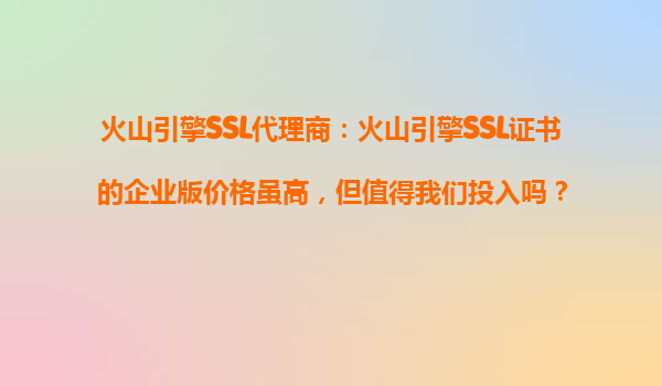 2025-10-17火山引擎SSL代理商:火山引擎SSL證書的企業(yè)版價格雖高,但值得我們投入嗎? 引言 在當今數(shù)字化的商業(yè)環(huán)境中,網(wǎng)絡安全已成為企業(yè)不可忽視的核心議題。SSL證書作為保障數(shù)據(jù)傳輸安全的基礎設施,其重...