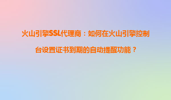 2025-10-17火山引擎SSL代理商指南:如何在火山引擎控制臺設(shè)置證書到期的自動提醒功能 一、SSL證書管理的重要性 在數(shù)字化時代,SSL證書是保障網(wǎng)站數(shù)據(jù)傳輸安全的核心組件。但證書通常有1-2年的有效期,若未及時續(xù)...