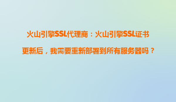 2025-10-17火山引擎SSL代理商:火山引擎SSL證書更新后,是否需要重新部署到所有服務(wù)器? 前言 在數(shù)字化時代,網(wǎng)站和應(yīng)用程序的安全性至關(guān)重要,SSL證書作為保障數(shù)據(jù)傳輸安全的核心工具,其管理和更新成為企...