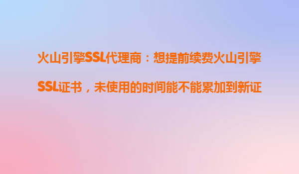 2025-10-17火山引擎SSL證書代理商常見問題解答 作為業(yè)界領(lǐng)先的云計算服務(wù)商,火山引擎提供的SSL證書服務(wù)因其穩(wěn)定性和易用性而廣受好評。許多用戶在使用過程中會遇到一些具體操作問題,比如證書續(xù)費時未使用時間能否累計的問題...