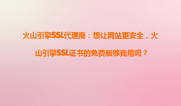 2025-10-15火山引擎SSL代理商:想讓網(wǎng)站更安全,火山引擎SSL證書的免費(fèi)版夠我用嗎? 一、SSL證書的基礎(chǔ)作用與重要性 SSL證書作為互聯(lián)網(wǎng)安全的基石,能夠?yàn)榫W(wǎng)站提供數(shù)據(jù)傳輸加密、身份驗(yàn)證和信任保障。無論是電商平臺、...
