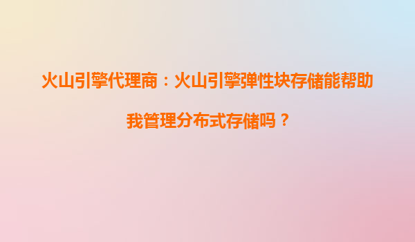 4008-020-360 火山引擎代理商解析:彈性塊存儲如何助力企業(yè)實(shí)現(xiàn)快速數(shù)據(jù)恢復(fù)? 一、火山引擎彈性塊存儲的核心優(yōu)勢 作為字節(jié)跳動(dòng)旗下的企業(yè)級技術(shù)服務(wù)平臺,火山引擎的彈性塊存儲(EBS)服務(wù)憑借高性能...