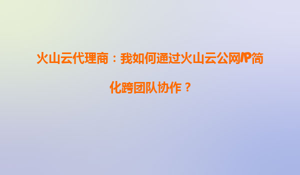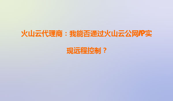 2025-10-06火山云代理商:通過火山云公網(wǎng)IP實(shí)現(xiàn)遠(yuǎn)程控制的可行性及優(yōu)勢解析 一、火山云公網(wǎng)IP的遠(yuǎn)程控制能力 作為火山云代理商,許多用戶關(guān)心的核心問題之一是:能否通過火山云的公網(wǎng)IP實(shí)現(xiàn)遠(yuǎn)程控...