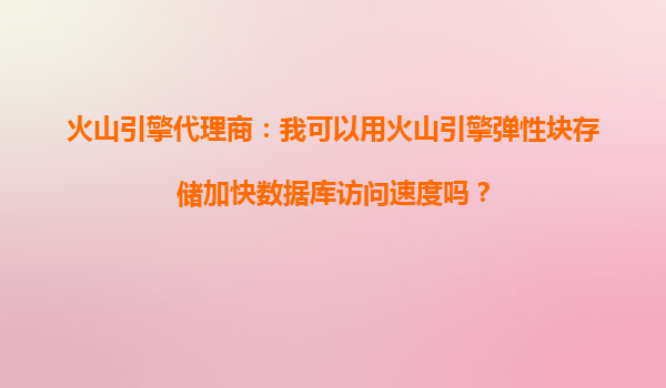 4008-020-360 火山引擎代理商:我可以用火山引擎彈性塊存儲加快數(shù)據(jù)庫訪問速度嗎? 火山引擎彈性塊存儲的核心優(yōu)勢 火山引擎的彈性塊存儲(EBS)是一種高性能、低延遲的塊存儲服務(wù),專為云上數(shù)據(jù)庫...