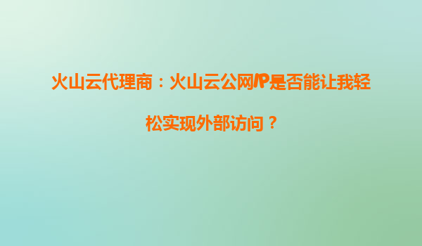 2025-10-09火山云代理商:火山云公網(wǎng)IP是否能讓我輕松實(shí)現(xiàn)外部訪問? 一、公網(wǎng)IP的核心價(jià)值與火山云的優(yōu)勢 在數(shù)字化轉(zhuǎn)型的浪潮中,企業(yè)對外部訪問的需求日益增長。公網(wǎng)IP作為連接內(nèi)外部網(wǎng)絡(luò)的橋梁...
