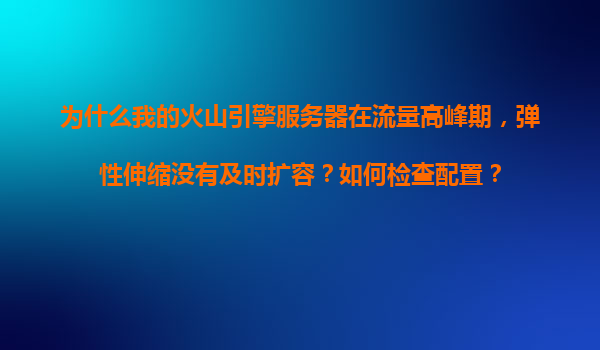 2025-11-17為什么我的火山引擎服務(wù)器在流量高峰期,彈性伸縮沒(méi)有及時(shí)擴(kuò)容?如何檢查配置? 一、問(wèn)題背景:彈性伸縮的重要性與火山引擎的優(yōu)勢(shì) 在云計(jì)算時(shí)代,彈性伸縮(AutoScaling)是保障業(yè)務(wù)穩(wěn)定運(yùn)行的核心功能。它能夠根...