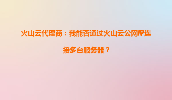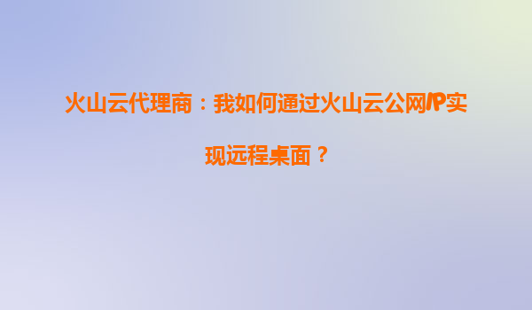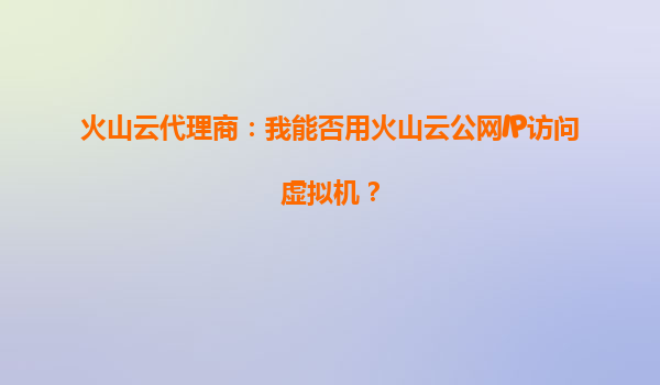 4008-020-360 火山云代理商:我能否用火山Bay公網(wǎng)IP訪問虛擬機? 一、火山云公網(wǎng)IP訪問虛擬機的可行性 作為火山云代理商,許多用戶關(guān)心的核心問題之一是:能否通過火山云的公網(wǎng)IP直接訪問其虛擬機實例?答案是肯定的。火山云(...