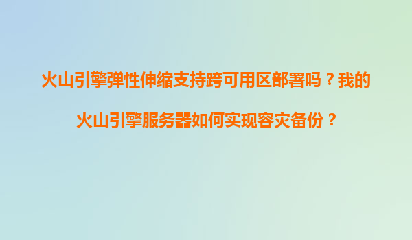 2025-11-16火山引擎彈性伸縮與容災備份:跨可用區(qū)部署與自動化容災方案 一、火山引擎彈性伸縮的跨可用區(qū)部署能力 火山引擎作為字節(jié)跳動推出的云計算服務平臺,其彈性伸縮服務(AutoScaling)支持跨可用區(qū)(AvailabilityZon...