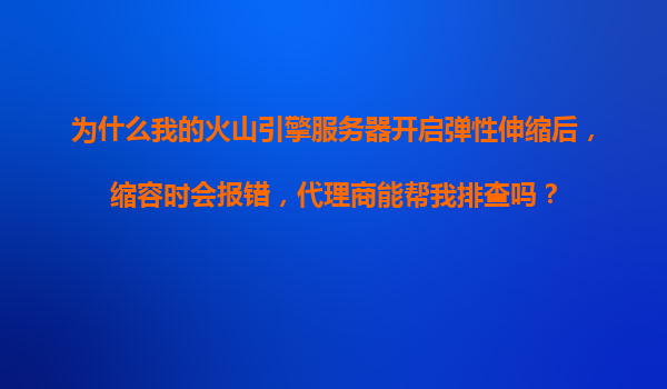 2025-11-16為什么我的火山引擎服務器開啟彈性伸縮后,縮容時會報錯?代理商能幫我排查嗎? 一、彈性伸縮常見縮容報錯原因 在火山引擎開啟彈性伸縮(AutoScaling)功能后,縮容過程中可能遇到多種報...