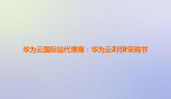 2026-01-02華為云國際站代理商:華為云3月IT采購節(jié)盛大開啟 一、華為云3月IT采購節(jié):企業(yè)數(shù)字化升級的黃金機遇 每年3月,華為云國際站代理商攜手華為云推出“IT采購節(jié)”活...