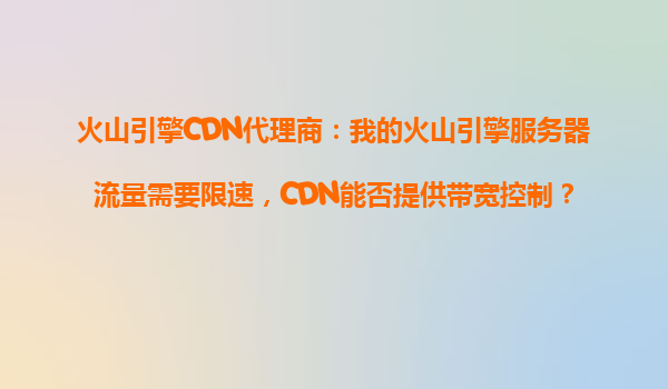 4008-020-360 火山引擎CDN代理商的流量限速需求解決方案 對(duì)于火山引擎代理商的服務(wù)器流量管理需求,火山引擎CDN不僅能提供高效的帶寬控制能力,還能幫助用戶(hù)優(yōu)化成本、提升服務(wù)質(zhì)量。以下是其核心功能與優(yōu)勢(shì)詳解。 ...