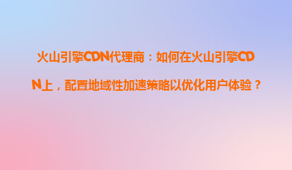 2025-10-18火山引擎CDN代理商:如何在火山引擎CDN上,配置地域性加速策略以?xún)?yōu)化用戶(hù)體驗(yàn)? 一、火山引擎CDN的核心優(yōu)勢(shì) 作為字節(jié)跳動(dòng)旗下的云計(jì)算服務(wù)品牌,火山引擎CDN憑借以下優(yōu)勢(shì)成為企業(yè)加速業(yè)務(wù)的首選: 全...
