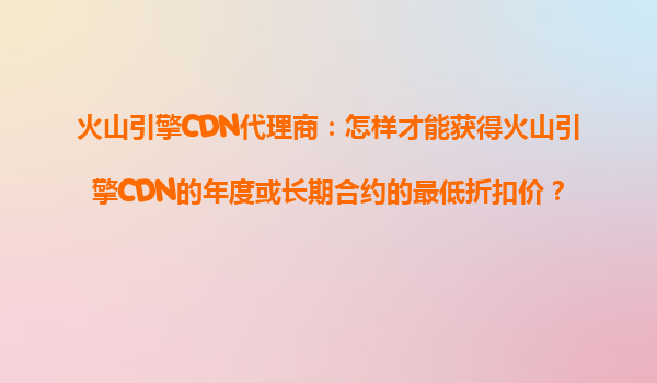 2025-10-17火山引擎CDN代理商:怎樣才能獲得火山引擎CDN的年度或長(zhǎng)期合約的最低折扣價(jià)? 一、火山引擎CDN的核心優(yōu)勢(shì) 火山引擎CDN作為字節(jié)跳動(dòng)旗下的云計(jì)算服務(wù)品牌,憑借其強(qiáng)大的基礎(chǔ)設(shè)施和技術(shù)能力,在內(nèi)容分發(fā)...