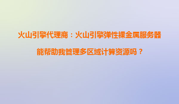 火山引擎代理商解析:彈性裸金屬服務器如何助力企業(yè)實現多區(qū)域計算資源管理 一、彈性裸金屬服務器的核心優(yōu)勢 火山引擎彈性裸金屬服務器(EBM)結合了物理機的性能優(yōu)勢和云服務器的彈性管理能力,...