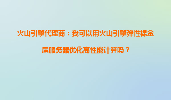 2025-10-09火山引擎代理商:我可以用火山引擎彈性裸金屬服務(wù)器優(yōu)化高性能計算嗎? 一、火山引擎彈性裸金屬服務(wù)器的核心優(yōu)勢 火山引擎的彈性裸金屬服務(wù)器(EBM)是一種結(jié)合了物理機性能與云服務(wù)彈性的創(chuàng)新產(chǎn)...