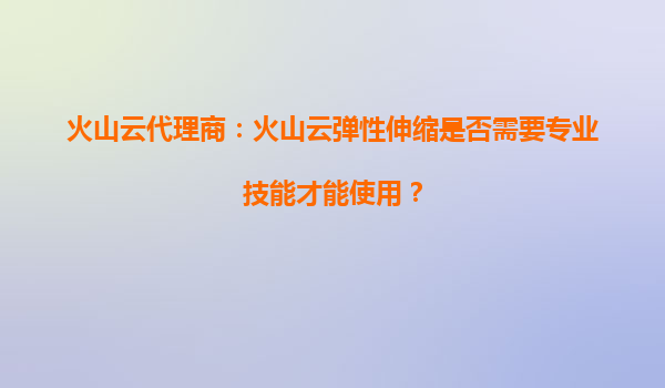 2025-10-05火山云代理商:火山云彈性伸縮是否需要專業(yè)技能才能使用? 一、火山云彈性伸縮的核心價(jià)值 火山云彈性伸縮(AutoScaling)是火山引擎提供的智能化資源管理服務(wù),能夠根據(jù)業(yè)務(wù)負(fù)載自動(dòng)調(diào)...